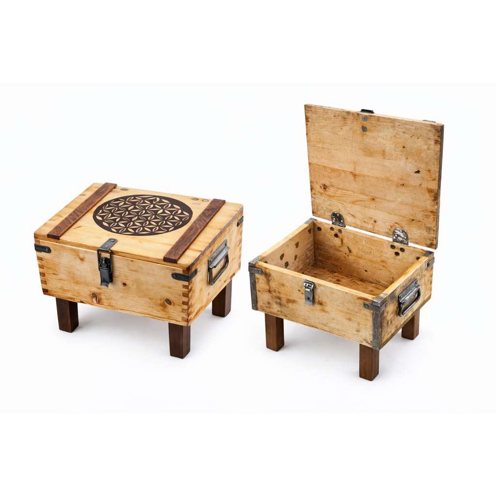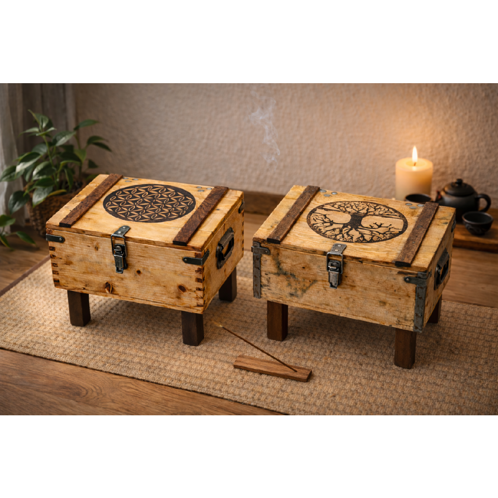Každá bedýnka je otevíratelná a ukrývá úložný prostor, ideální na čaj, bylinky, šperky nebo drobnosti, které chceš mít po ruce – a přitom krásně uschované.