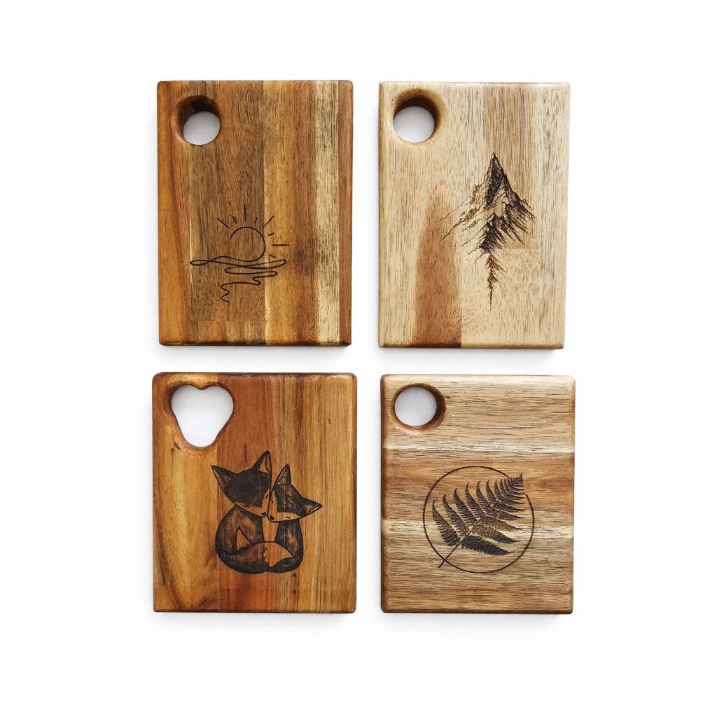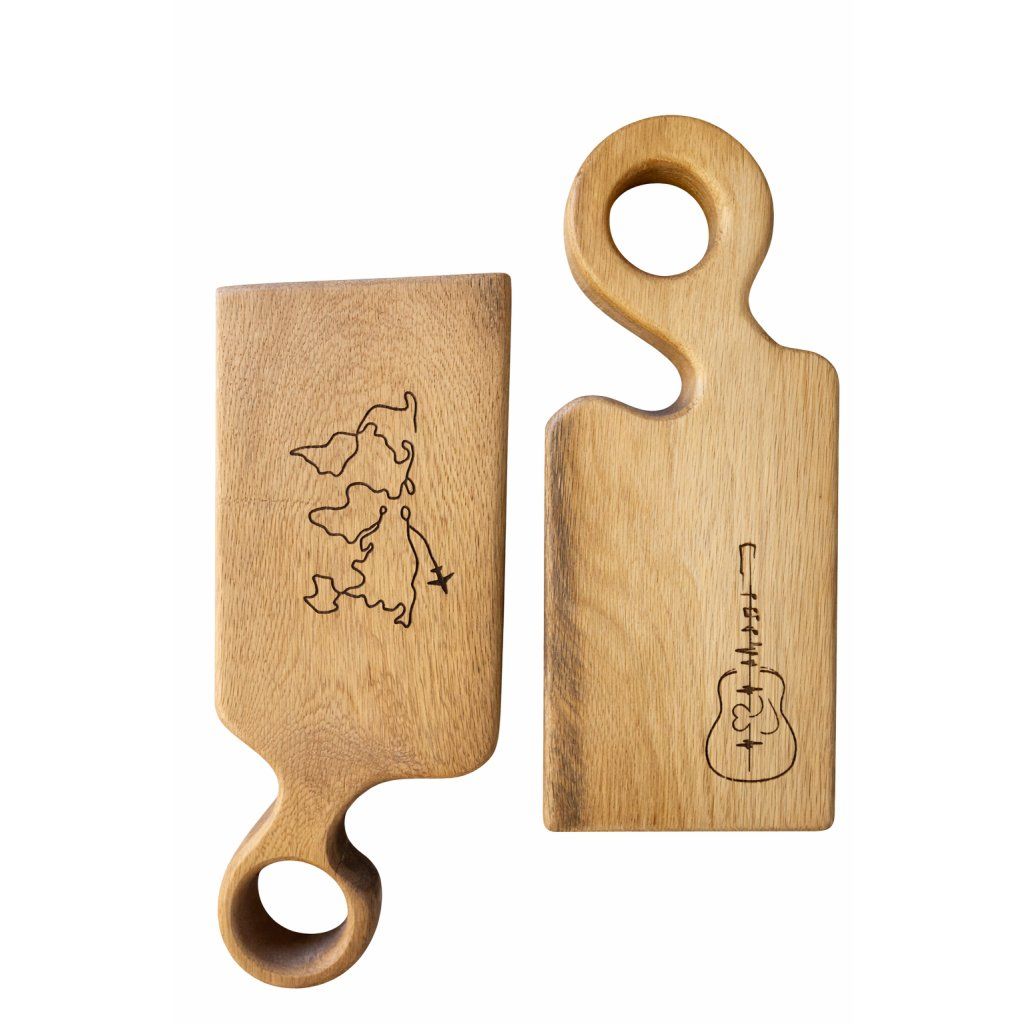 Každý kus je originál – vybírat můžeš z různých materiálů, velikostí i tvarů, takže si snadno najdeš prkénko přesně podle svého stylu. A pokud chceš něco opravdu osobního, rádi ti vytvoříme gravírování na přání – ideální jako dárek nebo jedinečný doplněk na cesty.